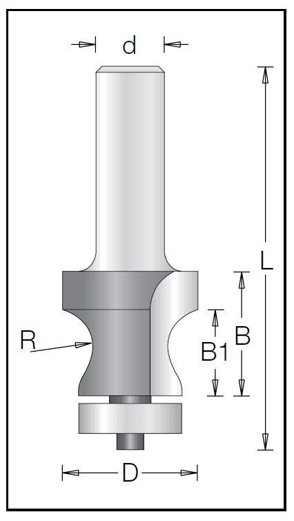 D=25 mm, R=8 mm, B=23 mm, B1=16 mm, L=77 mm, d=12 mm