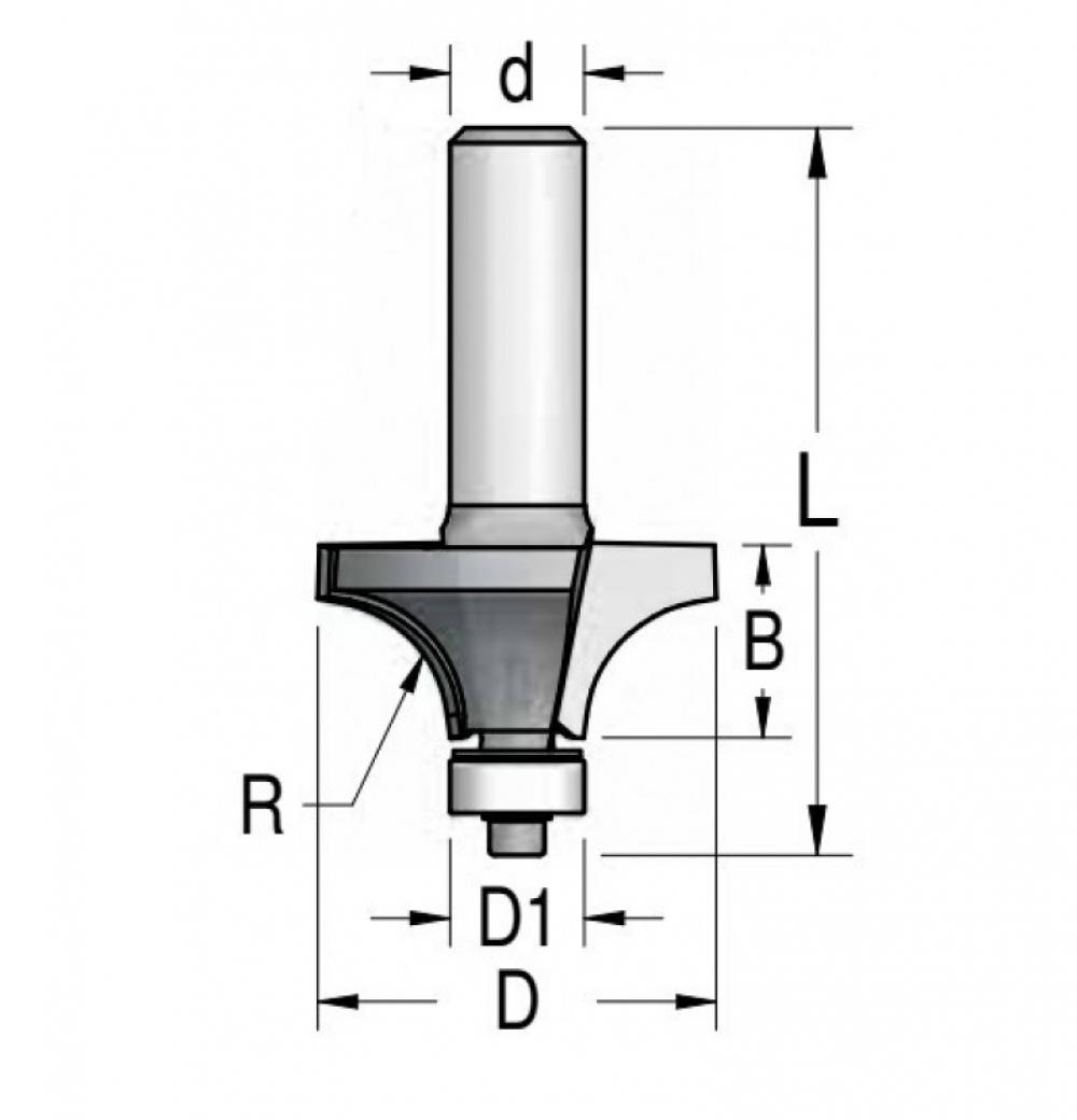 D=15.8 mm, D1=9.5 mm, R=3.2 mm, B=10 mm, L=45 mm