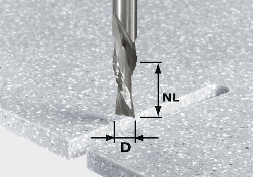 Для быстрого фрезерования вырезов – например, под мойку. Стружколомы обеспечивают оптимальную эвакуацию стружки: благодаря левосторонней спирали режущей кромки стружка быстро сходит вниз