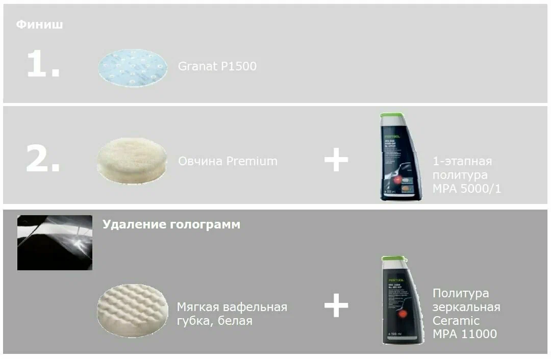 Эксклюзивная технология Festool: улучшенный состав для более быстрого и безупречного результата полирования
