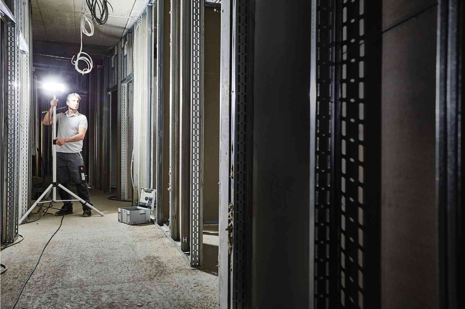 Новое поколение осветительных приборов: большая зона освещения вместо точечной подсветки. Уникальное расположение светодиодов для угла рассеивания 180°. Оптимально ровное освещение, цветовая температура близка к дневному свету. Выдвигается на высоту до 2 м на устойчивом штативе. Исключительно прочный и долговечный с длительностью свечения 10 000 часов (L70), с ударопрочными уголками, легко убирается в систейнер. Рукоятка для удерживания одной рукой, возможность подвешивания и кронштейн для кабеля? Само собой! Новый SYSLITE DUO. Оптимальное освещение.