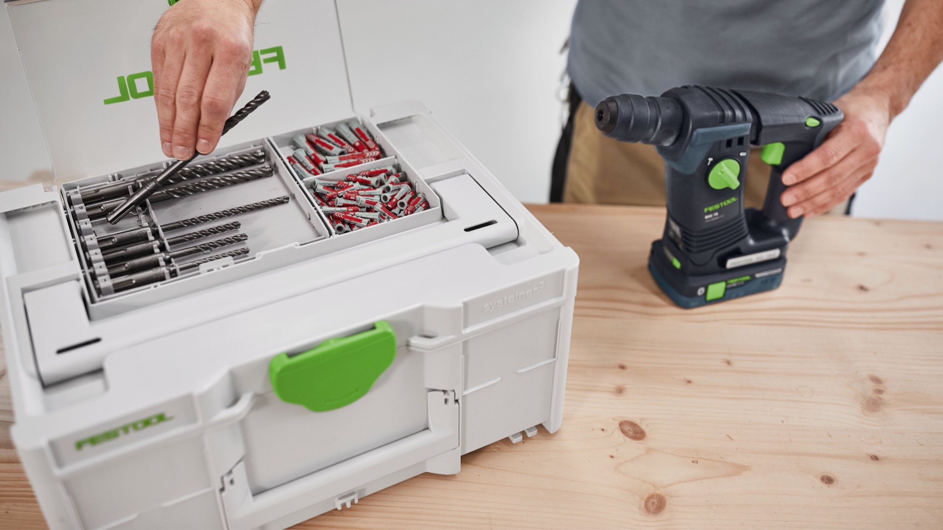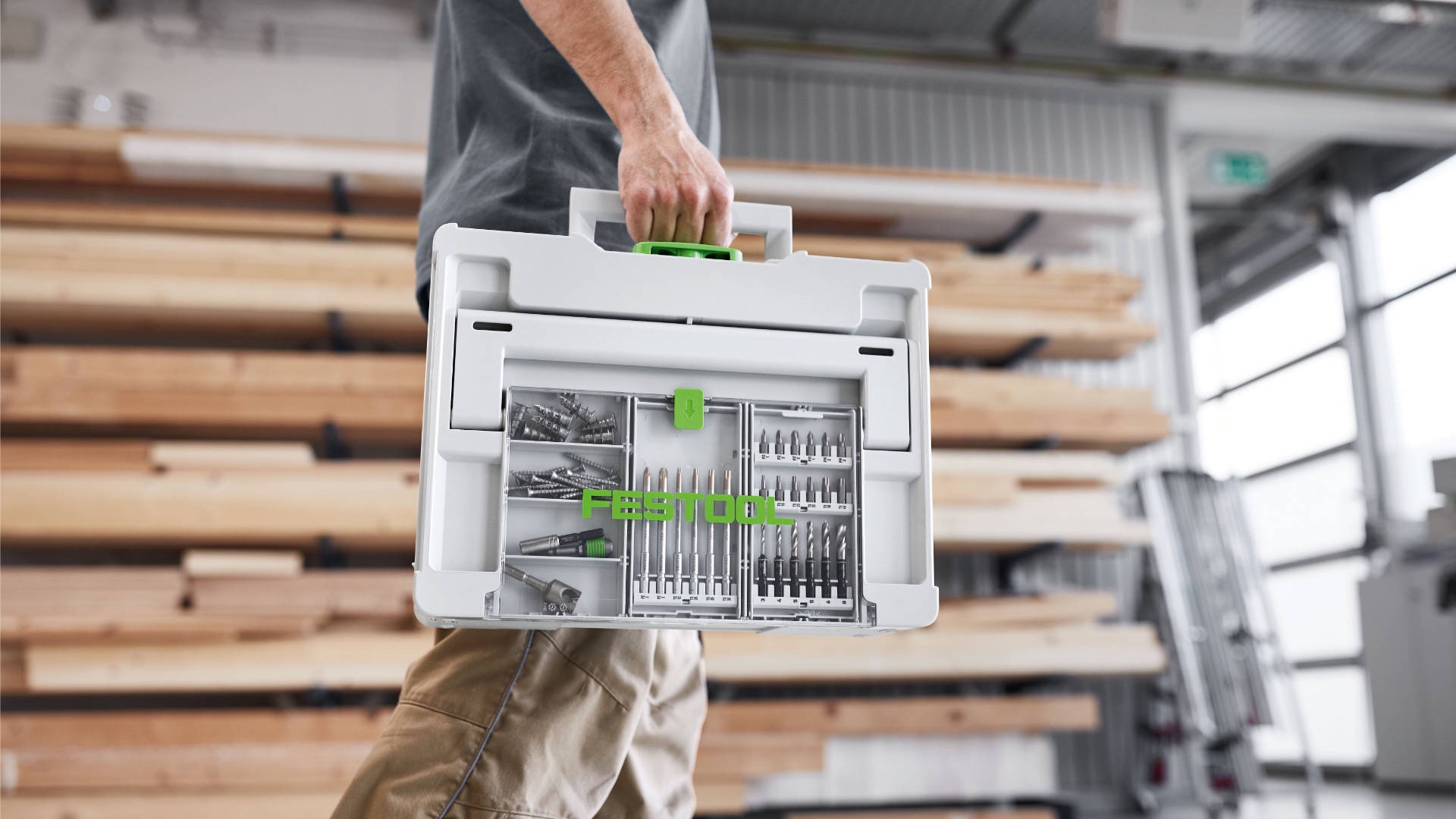 Аккуратно, всегда на виду, всегда под рукой: в систейнере с отсеком в крышке хранится оснастка для любого применения. Через прозрачную крышку всегда видно, что где лежит. С помощью разделителей можно сделать ячейки нужного размера: под длинные свёрла, пилки для лобзика, биты и другие мелкие детали. Совместимые кассеты с битами и свёрлами идеально вставляются и вынимаются из отсека в крышке.