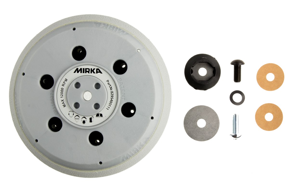 Универсальная шлифовальная подошва Abranet 150мм 5/16"+M8 жесткая - для любых комбинаций отверстий. Подошва оптимизирована для работы на плоских поверхностях и отличается высокой краевой износостойкостью. Благодаря наличию 15 отверстий большего диаметра к подошве можно крепить традиционные диски с 6 отв., 7 отв., 9 отв. и 15 отв. Подходит для машин с узким кожухом. Не рекомендуется использовать с пневматическими машинками ROS 150 мм, так как сочетание универсальной подошвы и машинки с широким кожухом не обеспечивает оптимального пылеудаления. В комплект поставки входит защитная прокладка 150 мм (6"). Для корректной установки подошвы используйте поставляемые в комплекте распорное кольцо и тарельчатую шайбу. Чтобы избежать трения, расстояние между кожухом и верхней частью подошвы должно быть минимальным. Туго затяните центральный болт крепления подошвы. Подошва не должна свободно вращаться. Время от времени проверяйте, туго ли затянут болт крепления подошвы.
