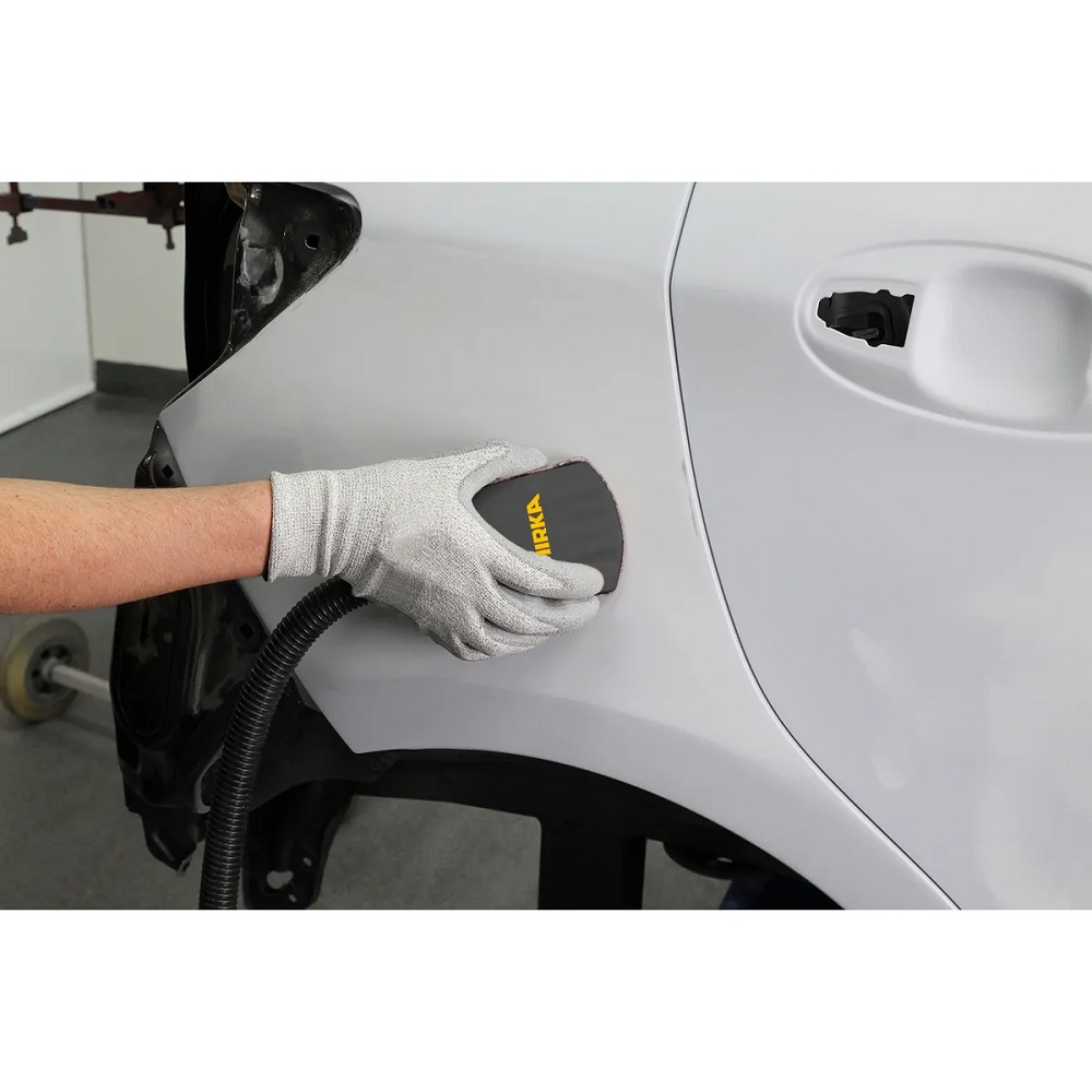 Ручной блок имеет закругленные углы и идеально подходит для шлифования труднодоступных зон и уголков. Он имеет плоскую конструкцию и форму удобную для пальцев. Для этого шлифовального блока используются шлифкруги 150мм с 15 отверстиями, если необходим отвод пыли. Для комфортной и чистой работы используется пылеудаляющие устройства которые соединены с шлифовальным блоком коническим адаптером и шлангом Ø 20 мм х 4 м