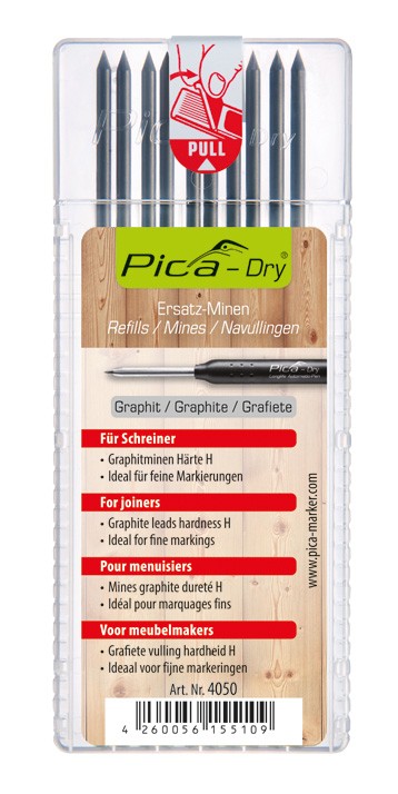 Набор сменных грифелей для строительного карандаша GRPH 2B WB . Поставляется в пластиковом кейсе, в комплекте 10 грифелей графитового цвета. Длина - 125 мм, диаметр - 2,8 мм, жесткость - Н. Применяются для нанесения разметки на дерево, металл, плитку, камень и др.