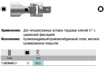 Карданный шарнир Zyklop, 1/2"