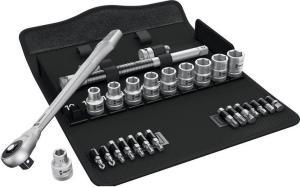 Фирма Wera разработала абсолютно новый подход к комплектованию наборов. До настоящего времени трещотки вместе с принадлежностями выпускались, как правило, в прочных, но неизящных и тяжелых кейсах. Новые футляры из текстиля обеспечивают небывалые прежде преимущества с точки зрения мобильности и экономии места. То же количество инструментов, которые до этого нужно было держать за рукоятку по крайней мере одной рукой, размещается теперь в компактном футляре, который в свою очередь может стать частью инструментального чемодана, в котором можно переносить большое количество разных инструментов. Так что сразу отпадает необходимость в постоянном перемещении из точки А в точку Б для смены инструментов. А значительное уменьшение веса всего комплекта инструментов делает их переноску гораздо приятнее, чем когда-либо прежде. Текстильный футляр вместе с трещоткой не повредится при падении.