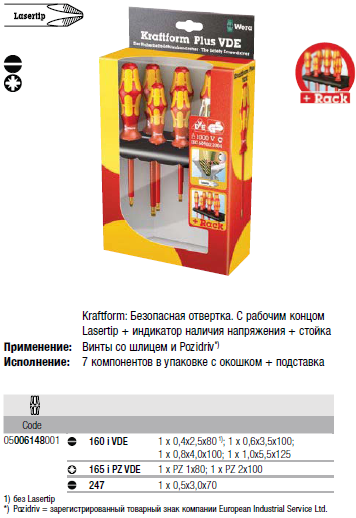 Набор отверток Kraftform Plus Серия 100 индикатор наличия напряжения стойка