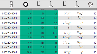 Г-образный ключ, метрический, хромированный