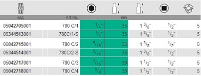 | Применение: | подходит для насадок 1/4“ с наружным шестигранником в соответствии с DIN 3126-C 6,3, насадок 5/16“ с наружным шестигранником в соответствии с DIN 3126-C 8, насадок 7/16“ с наружным шестигранником в оответствии с DIN 3126-E 11,2 (ISO 1173), насадок 5/8“ с наружным шестигранником, а также насадок ряда подключения Wera 1, 2, 6, 7 и 19 |