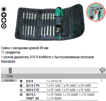 Kraftform Kompakt 41 Набор насадок длиной 89 мм + битодержатель Rapidaptor