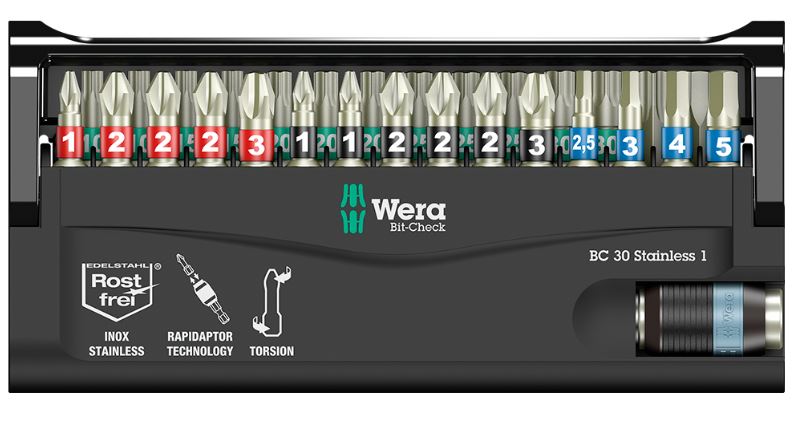 Профиль и размер битов легко определяются благодаря идентификаторам инструментов Wera "Take it easy" на основе цветовой кодировки и чётких надписей.