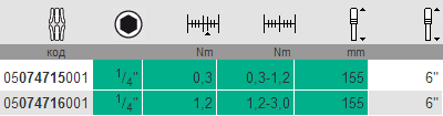 | Значение предварительной настройки: | 0,3 Нм, 1,2 Нм |
