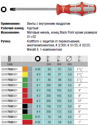 Отвертка для винтов с внутренним квадратом