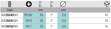 | Исполнение: | С закалкой до вязкой твердости, идеально для тяжелых случаев завинчивания, например, в металлические листы или металл;PH 0: JCIS (Japanese Camera Industrial Standard) |