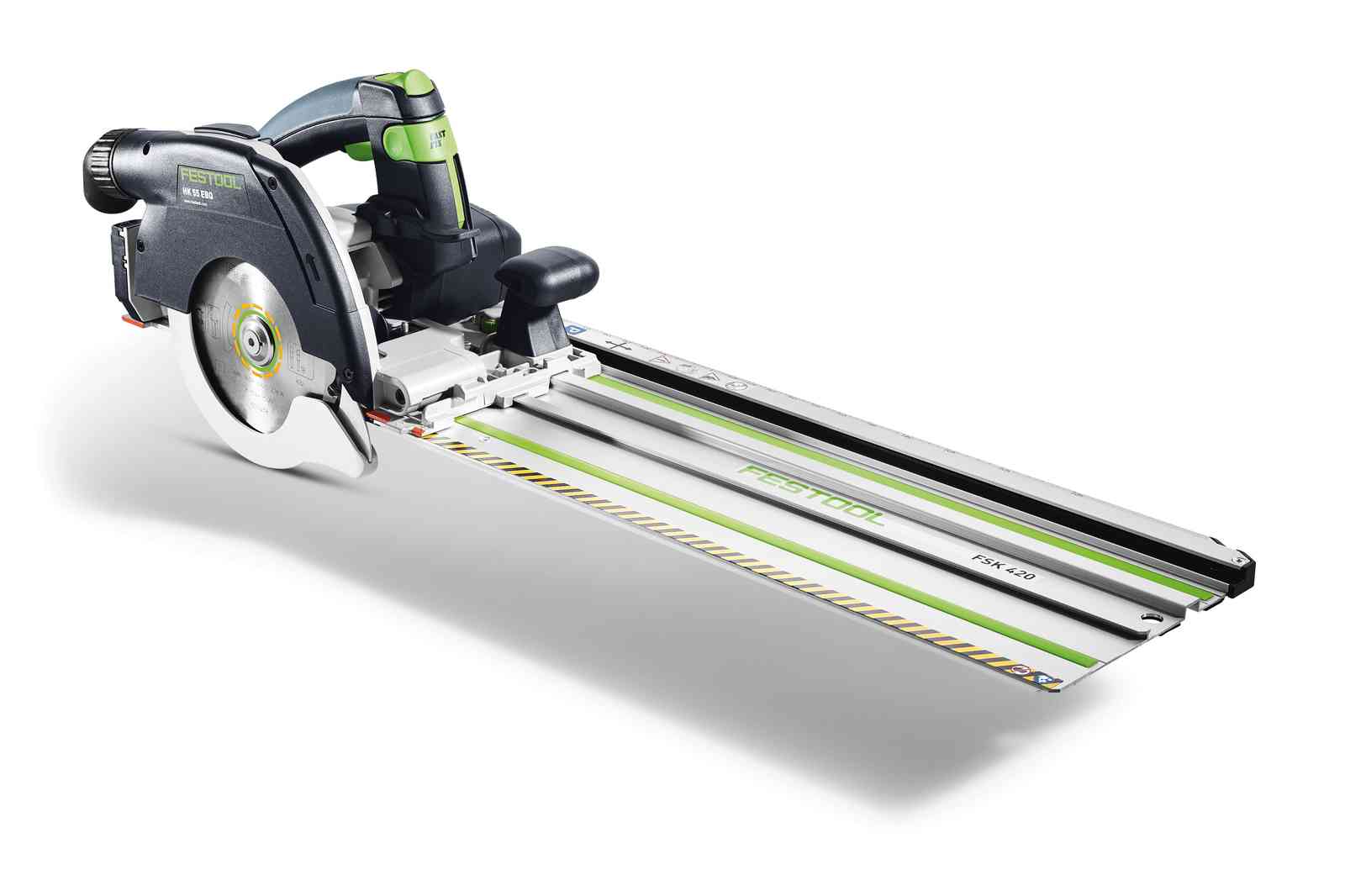 Дисковая пила HK 55 в комбинации с торцовочной шиной FSK. Новая система для торцевания объединяет точность и эффективность с высоким удобством использования, улучшенной эргономичностью и простым обращением. При этом такие опции, как настройка глубины реза с функцией врезания, дистанционное управление маятниковым кожухом, направляющий клин и система FastFix для простой смены пильного диска гарантируют Вам лучшие условия работы. А торцовочная шина FSK — точно воспроизводимые резы.