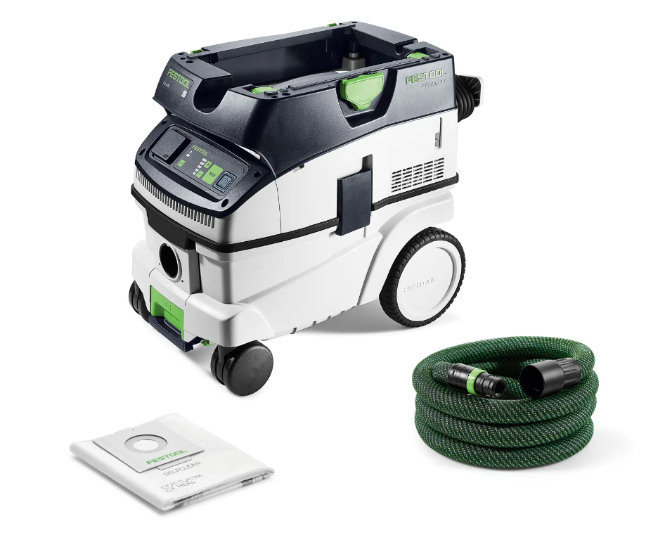 CLEANTEC CTL 26 EI предлагает большой объем контейнера 26 л в сочетании с компактными размерами. Он оснащен сенсорной панелью для интуитивно понятного управления пылесосом. Встроенный интерфейс Bluetooth® позволяет запускать пылеудаляющий аппарат с помощью беспроводного инструмента Festool или автоматически с помощью дополнительного пульта дистанционного управления. Гладкий антистатический всасывающий шланг удобно хранится во внутреннем отсеке. Система T-LOC позволяет быстро подсоединять контейнеры Systainer, сепараторы или рабочие центры. Это означает, что данный пылеудаляющий аппарат становится центральным элементом системы.