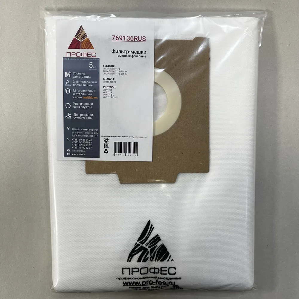 Фильтр-мешки сменные флисовые ПРОФЕС улучшенные. Подходит для пылесосов CT 17
