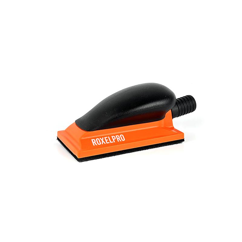 Малый шлифок RoxelPro имеет 13 отверстий для пылеотвода, используется для ручного шлифования с использованием абразива размером 70 x 125 мм. Изделие снабжено колодкой и идеально ровной шлифовальной подошвой с липучкой Velcro для крепления шлифовальных полосок.
