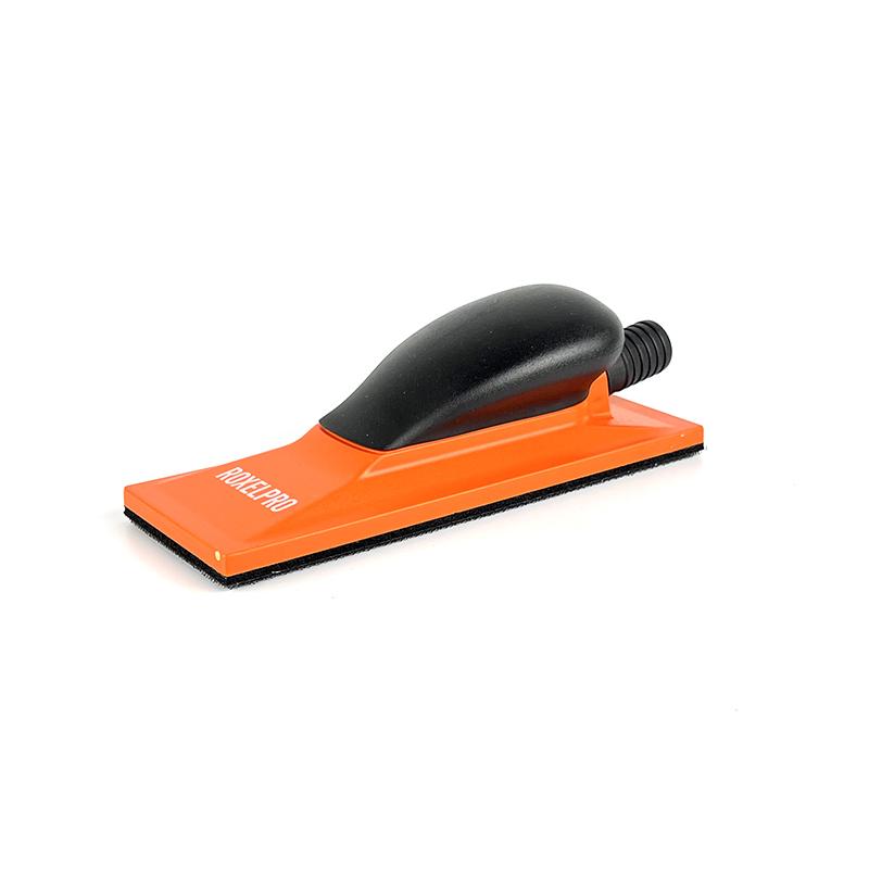 Данный шлифок применяется при ручном шлифовании с использованием шлифовального материала размером 70 x 198мм. Конструктивно состоит из колодки, выполненной в эргономичном дизайне, и идеально ровной шлифовальной подошвы, снабженной липучкой Velcro для крепления шлифовальных полосок. Шлифок производится как в варианте без пылеудаления так и с различными конфигурациями отверстий и патрубком для пылеудаления. Патрубок для пылеудаления идеально подходит к штатному шлангу (продается отдельно) диаметром 21 мм. Кроме этого шлифок с пылеудалением комплектуется адаптером для шланга с внутренним диаметром 29 мм.