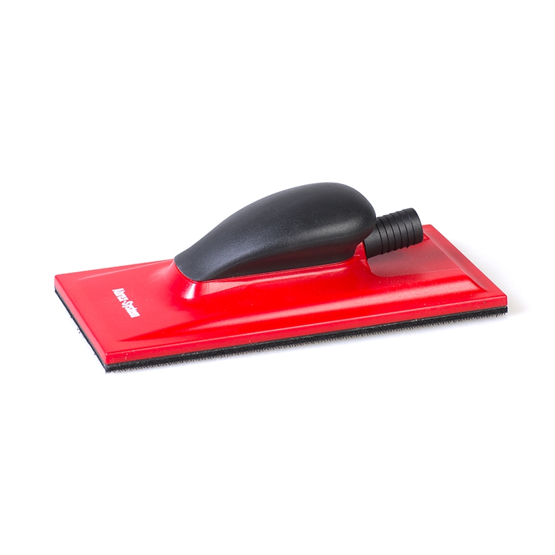 Данный шлифок (или шлифовальный блок) применяется при ручном шлифовании с использованием шлифовального материала размером 115 х 230мм. Конструктивно состоит из колодки, выполненной в эргономичном дизайне, и идеально ровной шлифовальной подошвы, снабженной липучкой Velcro для крепления шлифовальных полосок. Шлифок производится как в варианте без пылеудаления, так и с различными кофигурациями отверстий и патрубком для пылеудаления. Патрубок для пылеудаления идеально подходит к штатному шлангу (продается отдельно) диаметром 21 мм. Кроме этого, шлифок с пылеудалением комплектуется адаптером для шланга с внутренним диаметром 29 мм.