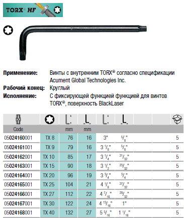 HF Г-образные ключ с фиксирующей функцией, BlackLaser
