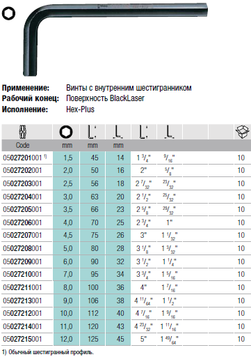 Г-образный ключ, метрический, BlackLaser
