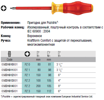 1165 i PZ VDE Изолированная отвертка для винтов с профилем Pozidriv