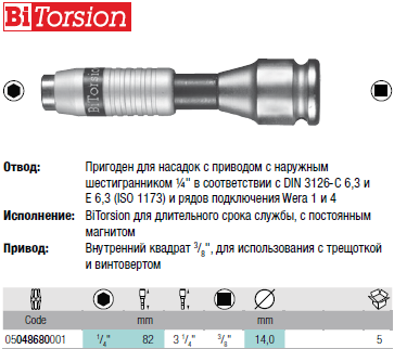 Быстросменный держатель BiTorsionС адаптером с шестигранника на четырехгранник.