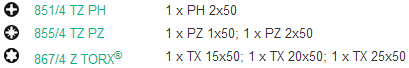 | 6 насадок длиной 50 мм, шестигранный привод 1/4", подходит для держателя в соответствии с DIN 3126-F 6,3, ISO 1173, или для прямого машинного подключения, с закалкой до вязкой твердости (Z), торсионная форма (TZ), препятствующая преждевременному износу, особенно подходят для завинчивания винтов в твердый материал, например, в листовой или другой металл. |