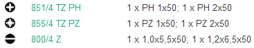 | 6 насадок длиной 50 мм, шестигранный привод 1/4", подходит для держателя в соответствии с DIN 3126-F 6,3, ISO 1173, или для прямого машинного подключения, с закалкой до вязкой твердости (Z), торсионная форма (TZ), препятствующая преждевременному износу, особенно подходят для завинчивания винтов в твердый материал, например, в листовой или другой металл. |