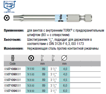 TORX ВО Насадки с отверстием, нержавеющая сталь
