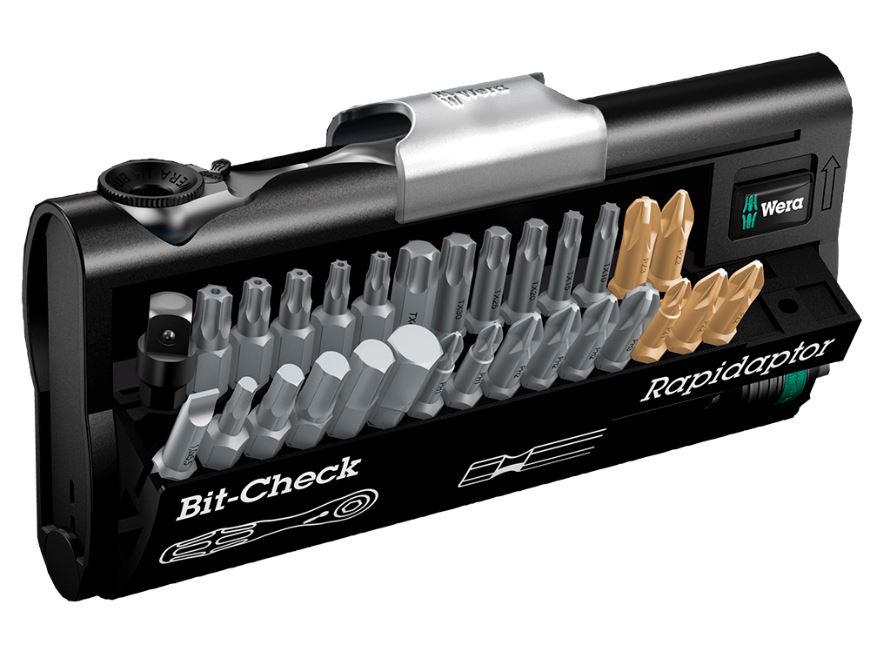 - 1 трещотка с насадкой Wera, кованная стальная конструкция; подходит для крепления насадок с наружным шестигранником 1/4" в соответствии с DIN 3126-C 6,3 и E 6,3 (ISO 1173), а также насадок типами хвостовиков Wera 1 и 4; с применением адаптера Wera 870/1 возможно также использование насадных инструментов 1/4"
