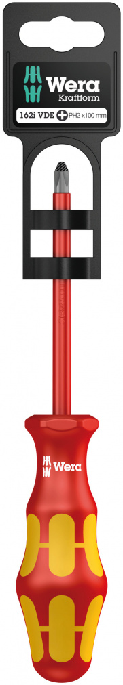 Отвёртка Wera VDE с многокомпонентной ручкой Kraftform Plus для работы в быстром и щадящем режиме: твердые зоны ручки для высокой скорости работы, в то время как мягкие зоны ручки обеспечивают передачу больших моментов силы. Поштучная проверка в водяной бане под напряжением 10000 В для безопасной работы на оборудовании с максимально допустимым напряжением 1000 В. Идентификаторы инструментов „Take it easy“ с цветовой кодировкой профиля и гравировкой размера – для простого и быстрого отбора требуемого инструмента. Шестигранный край ручки для защиты от перекатывания отвёртки на рабочем месте.