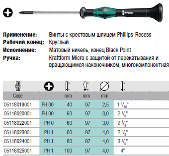 PH Крестовая отвертка для электронщиков