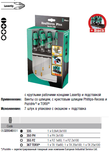 Набор отверток Kraftform Plus Lasertip